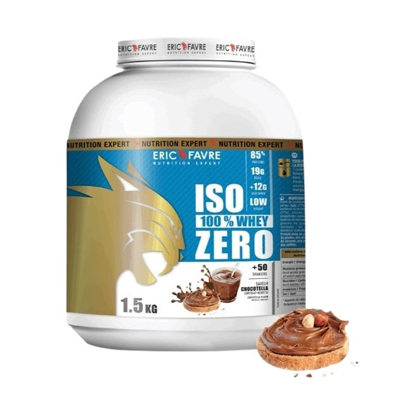 Iso Zero saveur Chocotella de la marque Eric Favre favorise le développement musculaire. Cette préparation est constituée de plus de 83 % de protéines de whey (WPI, WPC), l'une des plus pures sources de protéines.