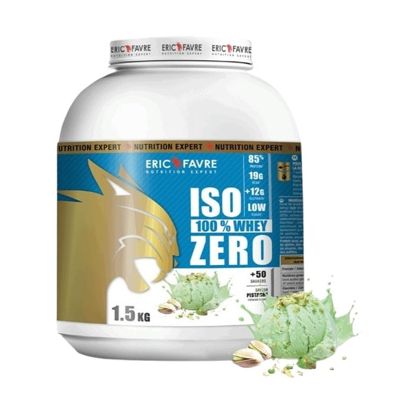Iso Zero conçu par la marque Eric Favre est constituée de plus de 83 % de protéines de whey (WPI, WPC), l'une des plus pures sources de protéines. Cette préparation saveur pistache est indiquée pour le développement musculaire.