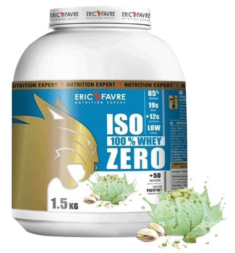 Iso Zero Pistache est fabriqué en France par les laboratoires Eric Favre. Cette marque a pour objectif de partager sa passion pour le sport à tous ceux qui envisagent de pratiquer régulièrement une activité physique afin de prendre de la masse musculaire sèche, sans graisse. Cette préparation en poudre est disponible en pot de 1,5kg.