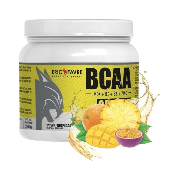 BCAA Optimiz saveur Tropical de la marque Eric Favre est une préparation idéale à prendre pendant l'entraînement. Elle regroupe 3 acides aminés essentiels qui entrent dans la construction du muscle : la leucine, l'isoleucine et la valine.