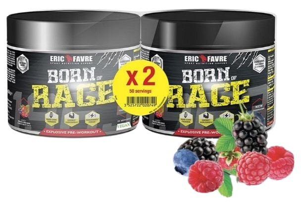 Born Of Rage Fruits Rouges de la marque Eric Favre est un puissant pre-workout en poudre composé d'un cocktail de 11 ingrédients pour assurer des trainings explosifs et intenses. Cette préparation favorise l'énergie, l'explosivité, l'endurance et la concentration.