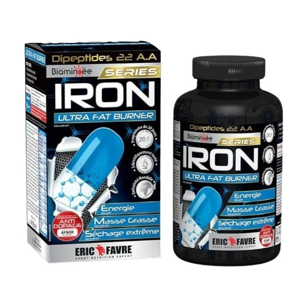 Le complément alimentaire Iron Ultra Fat Burner de la marque Eric Favre se prend en complément d'activités sportive pour favoriser le destockage et l'élimination des graisses afin d'affiner et de sculpter la silhouette tout en transformant les graisses en énergie.