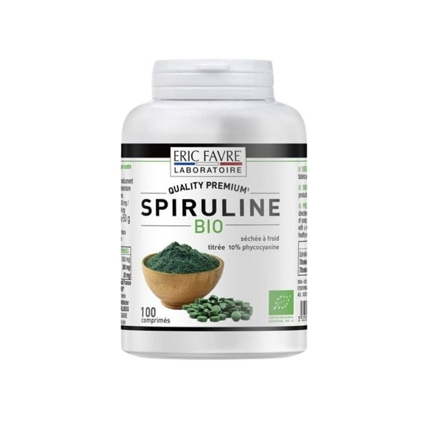Spiruline Vegan Bio du laboratoire Eric Favre est un complément alimentaire avec de la spiruline de qualité supérieur certifiée Agriculture Biologique. La spiruline est riche en anti-oxydants qui aident le corps à se protéger contre les conséquences du stress oxydatif.