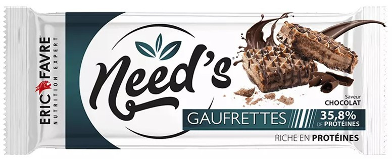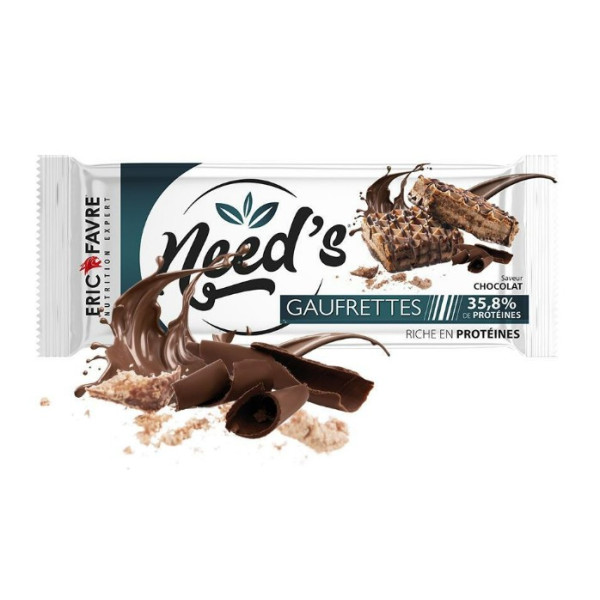 Need's Gaufrettes saveur Chocolat de la marque Eric Favre est un snacking protéiné croustillant et savoureux. Ces gaufrettes sont idéales à consommer avant ou après l'effort.