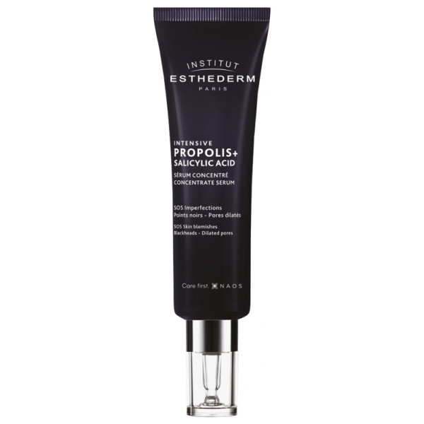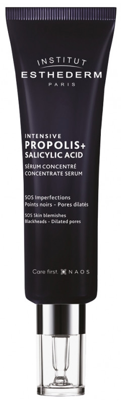 Intensive Propolis+ Salicylic Acid Sérum Concentré de l'Institut Esthederm cible et réduit les imperfections, resserre visiblement les pores et atténue les marques résiduelles.