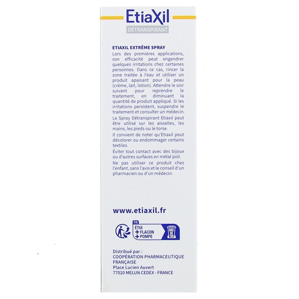 Le Détranspirant Extreme Transpiration Excessive est fabriqué en France par la marque Etiaxil qui propose une large gamme de solutions pour soigner les problèmes de transpiration et l’hyperhidrose (excès de sudation).