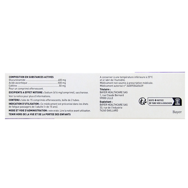 Ce médicament est un antiasthénique. Il contient notamment de la vitamine C et de la caféine.