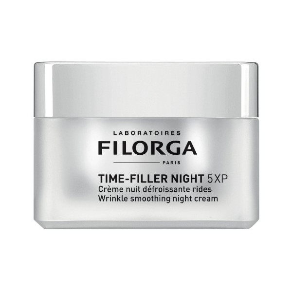 Découvrez Time-Filler Night 5XP Crème Nuit Défroissante Rides de Filorga qui nuit après nuit réduit visiblement l'apparence des 5 types de rides : rides du lion, rides du front, rides de la patte d'oie, rides des sillons nasogéniens et rides liées au sommeil.