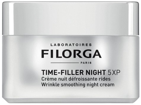 La crème de nuit Time-Filler Night 5XP de Filorgla permet de traiter les marques du temps en agissant spécifiquement sur cinq types de rides : ride de front, ride du lion, pattes d’oie, sillons nasogéniens et plis liés au sommeil. Elle se sert des mécanismes de régénération nocturne de la peau pour lisser les traits et pour atténuer les rides, en particulier celles causées par le contact de l’oreiller.