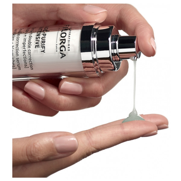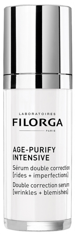 Découvrez le sérum visage double correction Age-Purify Intensive Rides + Imperfections des laboratoire Filorga, le 1ᵉʳ soin développé avec des médecins esthétiques et des dermatologues pour une peau simultanément plus lisse et plus nette.