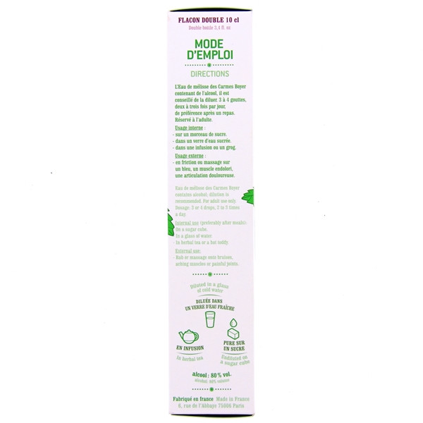Eau de Mélisse des Carmes Boyer Flacon double 10cl