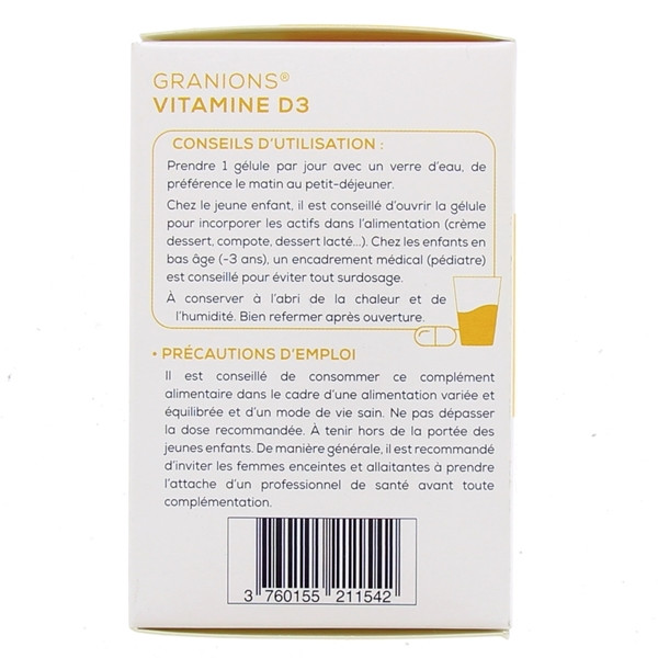 Les actifs qui composent le complément alimentaire Vitamine D3 du laboratoire Granions favorisent le fonctionnement normal du système immunitaire.