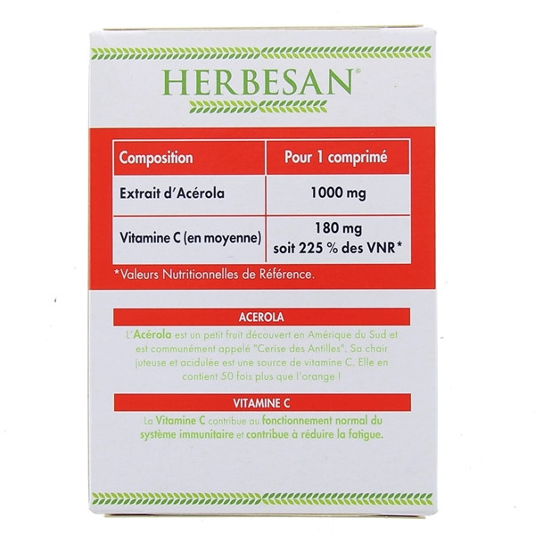 L'association vitamine C et extraits d'Acérola permet au complément alimentaire Acérola de la marque Herbesan de revitaliser l'organisme et stimuler le système immunitaire.