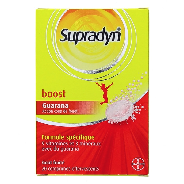 Supradyn Boost est un complément alimentaire supprimant toute votre fatigue physique et intellectuelle grâce à la présence d'un extrait sec de guarana aux propriétés remarquablement énergisantes.