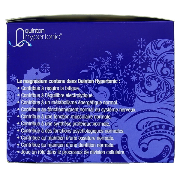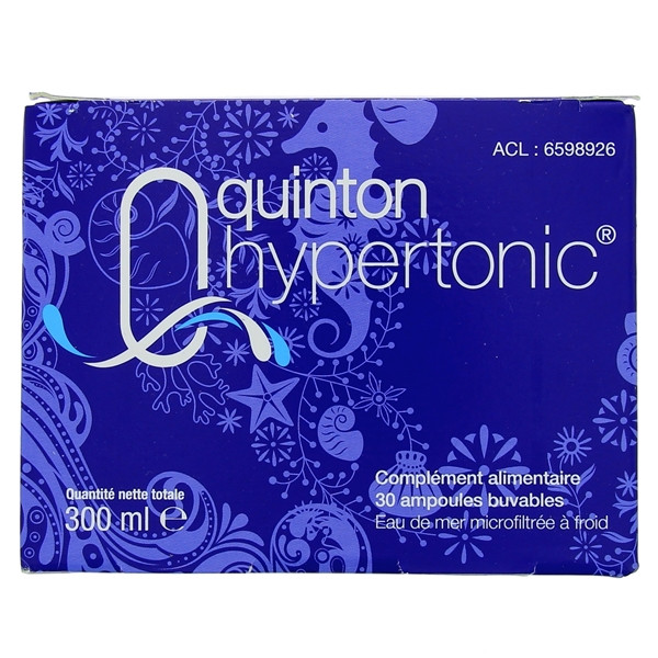 Quinton hypertonic est un complément alimentaire sous forme d'une solution buvable à l'eau de mer microfiltrée à froid possédant des propriétés revitalisantes et reminéralisantes.