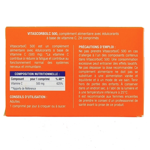 - Ne pas dépasser la dose journamière recommandée. VitascorbolBoost est un complémentaire avec édulcorant et il contient de la caféine (40 mg/cp), déconseillé aux enfants, aux femmes enceintes ou allaitantes.