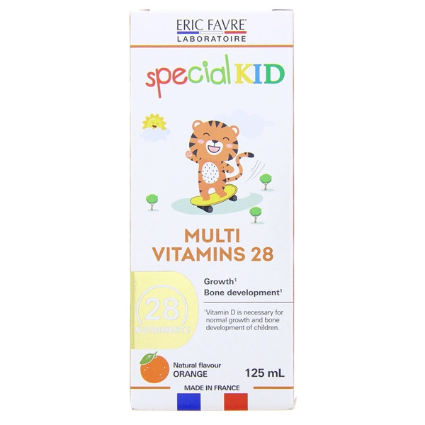 Special Kid Multivitamines 28 des laboratoires Eric Favre est un complément alimentaire sous forme de sirop qui apporte à votre enfant toutes les vitamines dont il a besoin au quotidien pour sa croissance, son développement osseux et son système immunitaire.