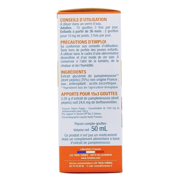 La plus petite pharmacie au monde ! EPP 1200 BIO est un extrait natif de pépins de pamplemousse biologique avec une haute teneur en bioflavonoides, garantie par HPLC. Quelques gouttes suffisent pour agir.