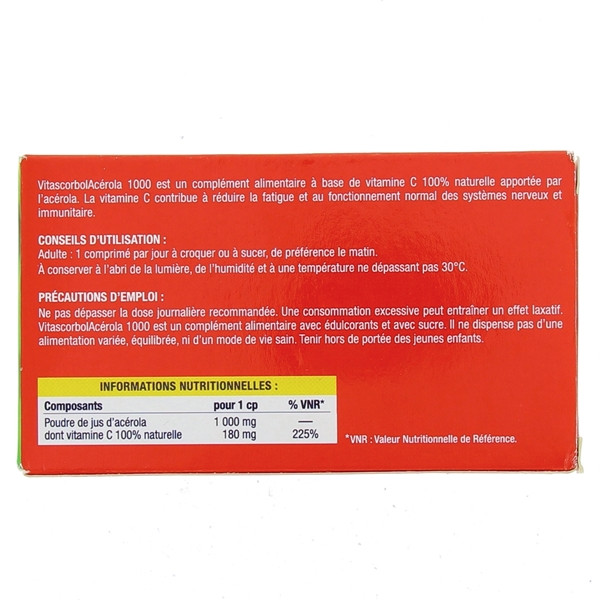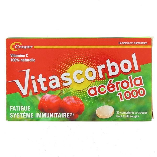 Vitascorbol Acérola 1000 Vitamine C x30cpr à croqu