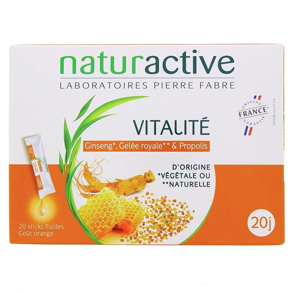 Le programme 20 jours Vitalité de la marque Naturactive des laboratoires Pierre Fabre est formulé à base de Ginseng, de Gelée Royale et de Propolis. Il est destiné à maintenir un bon fonctionnement du système immunitaire et à réduire la sensation de fatigue passagère.