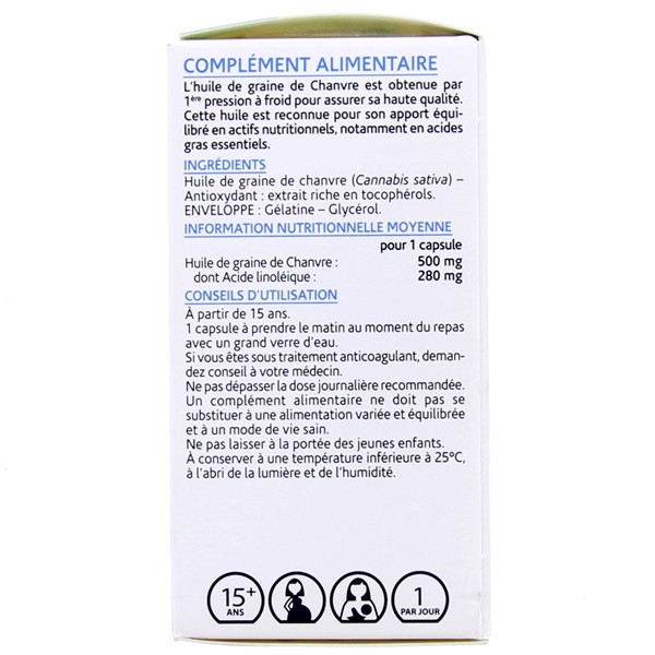 Le complément alimentaire Cannabis Sativa développé par le laboratoire Arkopharma est formulé à base d'huile de graine de chanvre reconnue pour son apport équilibré en actifs nutritionnels, notamment en acides gras essentiels.