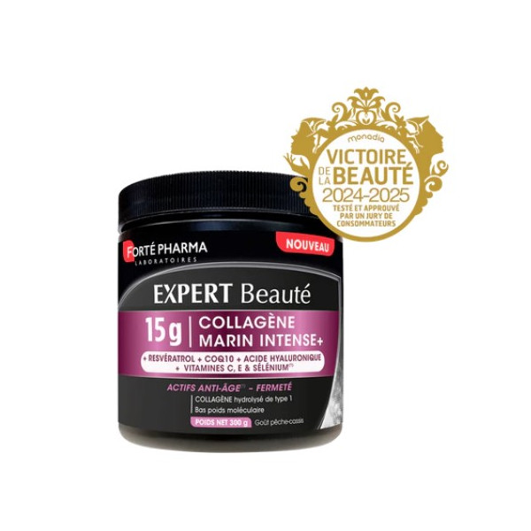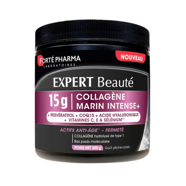 Expert Beauté Collagène Marin Intense+ 15g Pot 300g de la marque Forté Pharma a été développé pour préserver la fermeté de la peau. Ce complément alimentaire concentre des actifs anti-âges.