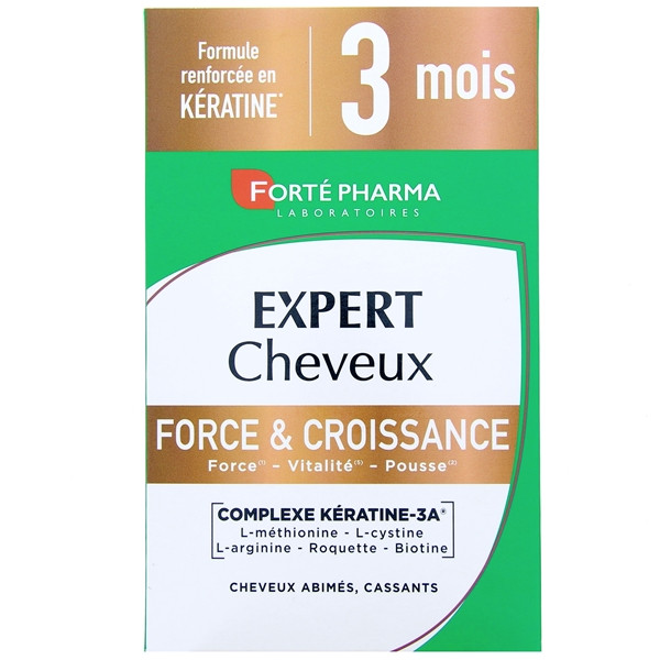 Expert Cheveux Force & Croissance des laboratoires Forté Pharma est un complément alimentaire destiné aux cheveux abîmés et cassants. Il favorise la force, la vitalité et la pousse des cheveux afin de retrouver une chevelure éclatante de santé.
