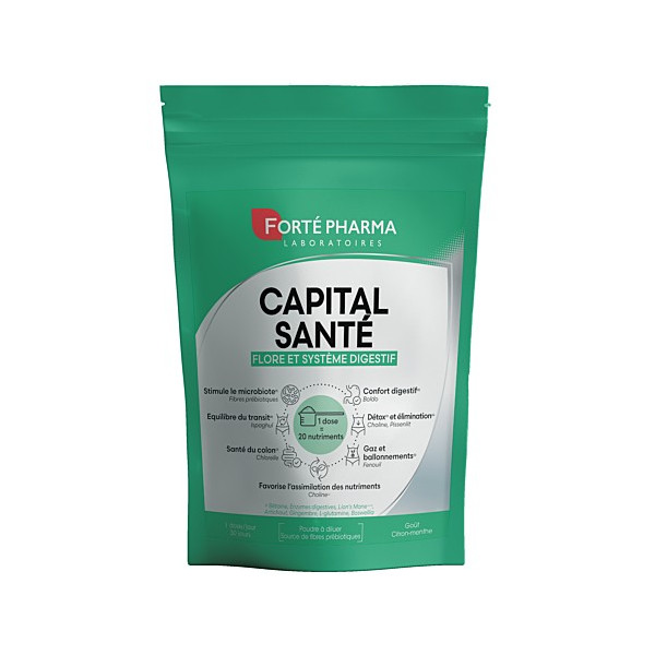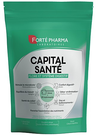 Capital Santé Flore et Système Digestif des laboratoires Forté Pharma est un complément alimentaire complet sous forme de poudre à diluer indiqué pour la santé et le confort de la flore intestinale et du système digestif.