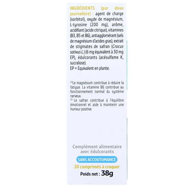Disponible en boîte de 20 comprimés à croquer, goût fruits rouges.
