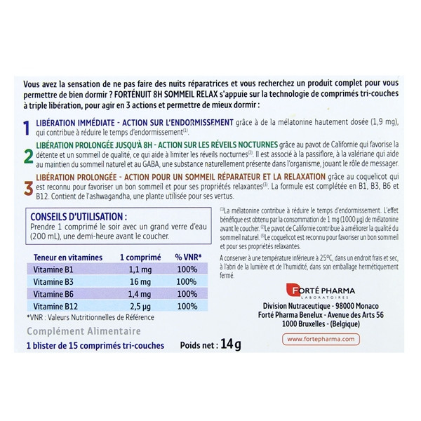 Forté Nuit 8h Sommeil Relax x15cpr tri-couches For