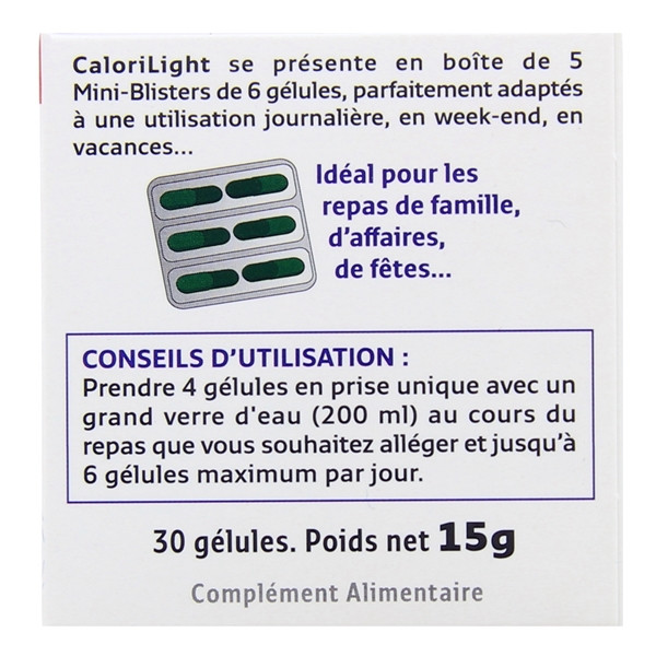 CaloriLight x30 gélules a été élaboré par Forté Pharma à l’intention des personnes qui doivent gérer leurs écarts alimentaires ponctuels : dîner copieux au restaurant ou au cours d’une réunion de famille ou encore lors de repas d’affaires. Formulé à base d’actifs d’origine naturelle, ce complément alimentaire permet de contrôler les calories.