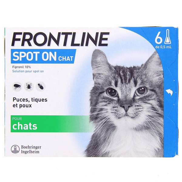 Sans parfum, Spot-On de Frontline est adapté à toutes les races de chats, à condition qu’ils soient âgés de plus de 2 mois et pèsent 2 kg et plus. Sachez qu’une boîte contient 6 pipettes.