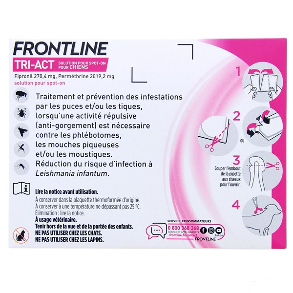 Tri-act Chien L (20-40kg) est fabriqué en France par la marque Frontline. Les experts vétérinaires qui collaborent avec cette enseigne ne cessent d’améliorer la formule de produits antiparasitaires pour chiens afin d’offrir des solutions de plus en plus performantes.
