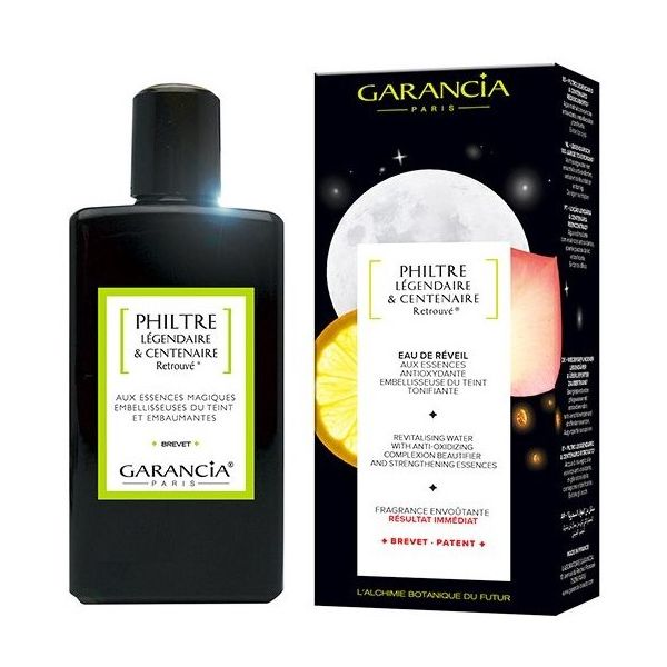 Philtre légendaire & Centenaire Retrouvé du laboratoire Garancia est une eau de réveil aux actifs antioxydants et tonifiants pour embellir le teint. Cette eau au parfum envoutant et apaisant lisse le grain, tonifie la peau et ravive son éclat.