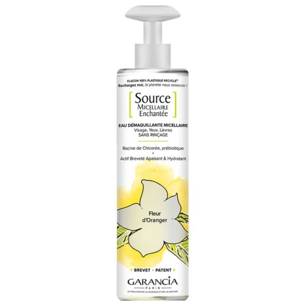 Source Micellaire Enchantée Fleur d'Oranger du laboratoire Garancia est une eau démaquillante micellaire pour le visage, les yeux et les lèvres. Cette eau micellaireà l'action complète, nettoie, démaquille, hydrate, apaise et illumine la peau.