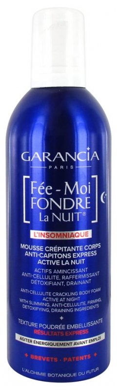 Fée-Moi Fondre La Nuit Mousse Corps du laboratoire Garancia est une mousse cryo-crépitante corps anti-capitons express qui agit la nuit. Ce soin possède des actifs amincissant, anti-cellulite, raffermissant et drainant pour une peau gainée dès le réveil.