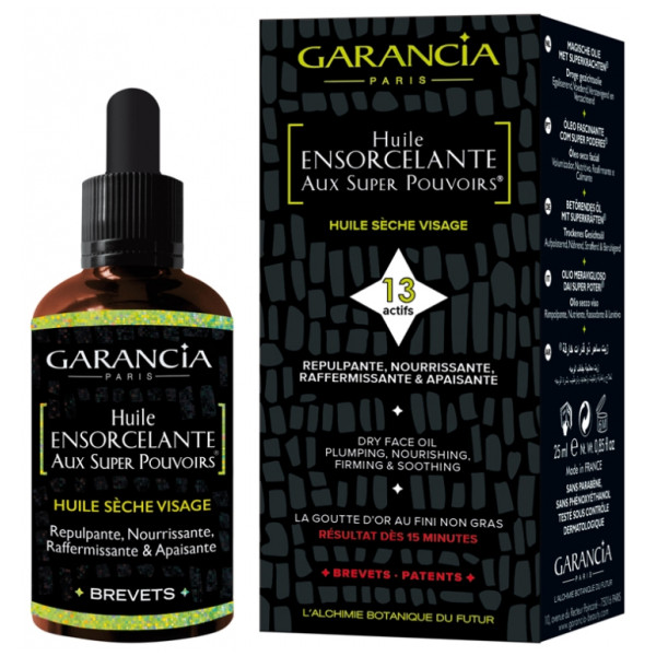 L'huile Ensorcelante Aux Super Pouvoirs du laboratoire Garancia est une huile sèche pour les peaux sèches du visage. À base de 13 actifs, cette huile pour le visage a une action repulpante, nourrissante, raffermissante et apaisante dès 15 minutes après son application.