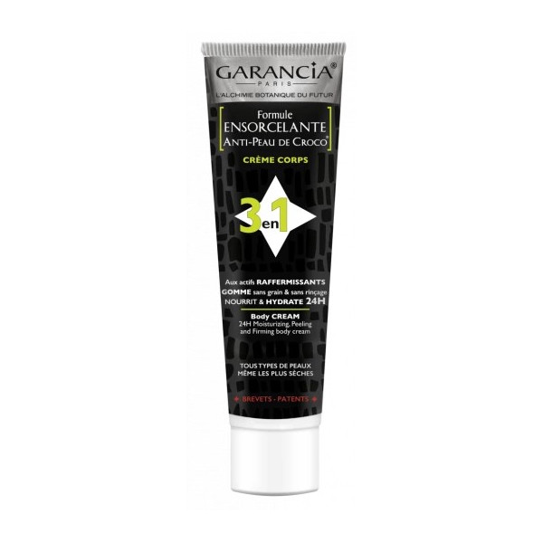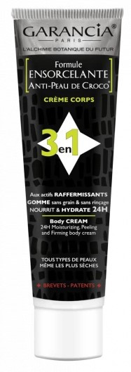Formule Ensorcelante Anti-Peau de Croco 3 en 1 du laboratoire Garancia est une crème pour le corps aux actifs raffermissants, destinée à tous les types de peaux, même les plus sèches. Elle gomme sans grain et sans rinçage, nourrit et hydrate pendant 24 h la peau.