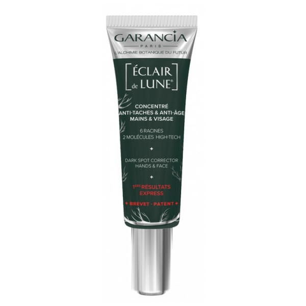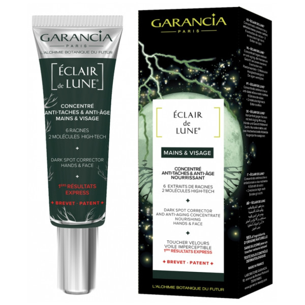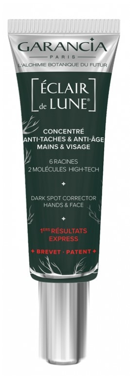 Éclair de Lune Concentré Anti-taches et Anti-âge nourrissant Mains & Visage est formulée à base de 6 extraits de racines et 2 molécules high-tech. Ce soin aide quotidiennement à éclaircir les taches brunes, à lutter contre l'apparition des nouvelles et le vieillissement cutané et à nourrir la peau.
