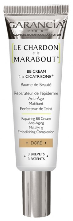 Chardon et le Marabout BB Crème à la Cicatrisone Doré est un soin réparateur de l'épiderme, un anti-âge, un matifiant et un perfecteur de teint. Cette crème poudre multi-actions convient aux teints médiums à mats.