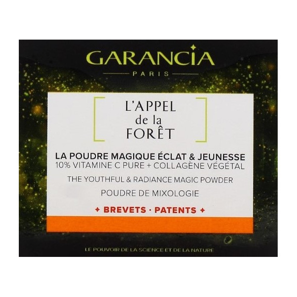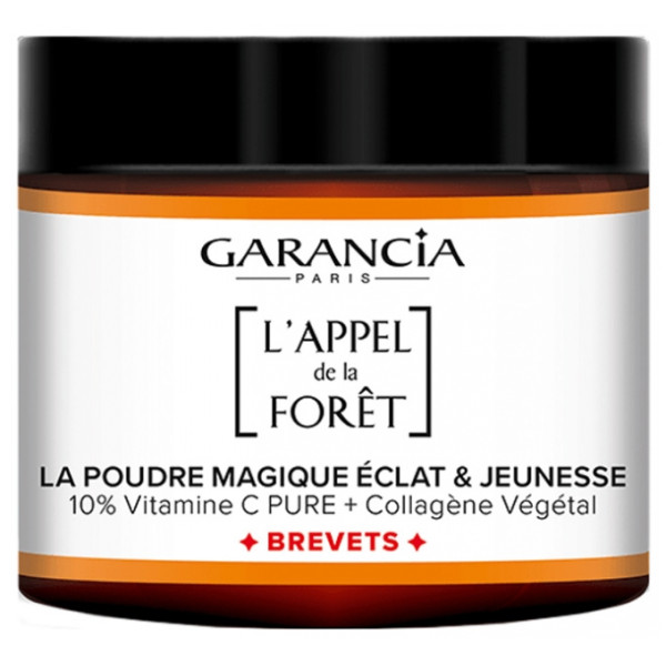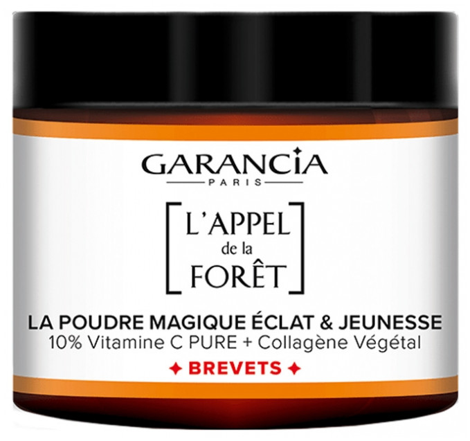 L'appel de la Forêt Poudre Magique Éclat & Jeunesse du laboratoire Garancia est une poudre de mixologie antioxydante contenant 10 % de vitamine C pure dans sa forme la plus stable associée à du collagène vegan pour une peau plus jeune et éclatante.