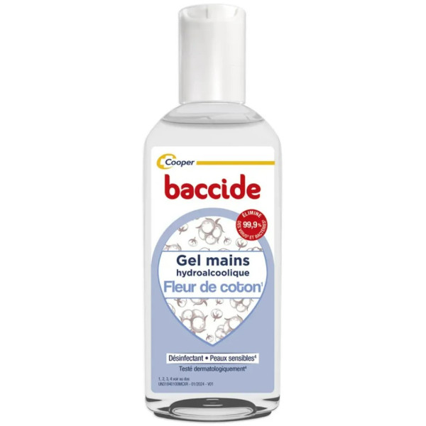 Baccide Gel Mains Hydroalcoolique Fleur de Coton Peaux Sensibles est idéal pour l’hygiène de vos mains. Grâce à sa formule à base d’éthanol 70 % m/m, il s’utilise sans eau et sans serviette étant donné qu’il sèche tout seul. Ce soin permet d’avoir des mains saines à tout moment, surtout en cas d’épidémie de gastro-entérite ou de grippe.