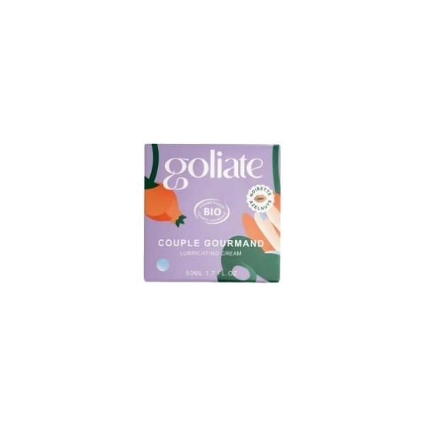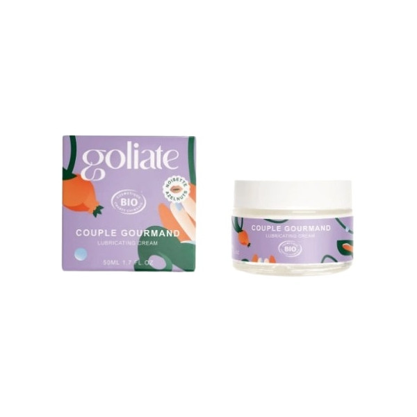Couple Gourmand Bio de la marque Goliate est une crème de massage 2 en 1 naturelle, bio et vegan. Elle peut s'utiliser comme huile de massage comestible et comme lubrifiant intime.
