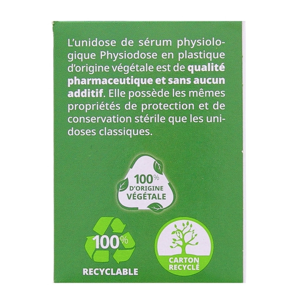 Physiodose Sérum Physiologique Stérile est indiqué pour l'hygiène nasale, l'hygiène oculaire et le rinçage auriculaire des nourrissons, enfants et adultes. Les unidoses sont conçues en plastique d'origine végétale.