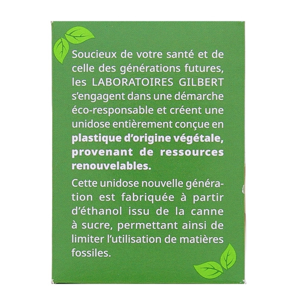 De fabrication française, chaque unidose est fait de plastique d’origine végétale 100 % recyclable, provenant de ressources renouvelables. Ils sont faits à partir d’éthanol extrait de canne à sucre. Ils contiennent une solution stérile, dépourvue de conservateur.