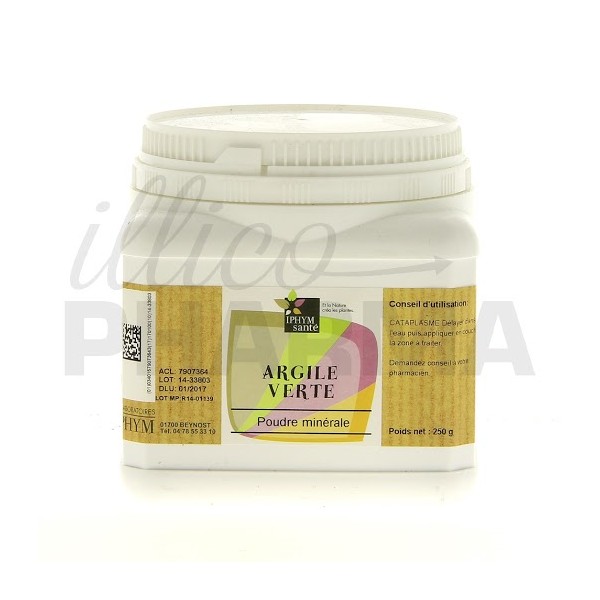 Grâce à l'efficacité de l'argile verte Iphym, il est possible de nettoyer toutes les impuretés sur la surface de l’épiderme. Conditionnée en pot de 250 grammes, elle peut être appliquée en cataplasme ou utilisée en solution buvable.