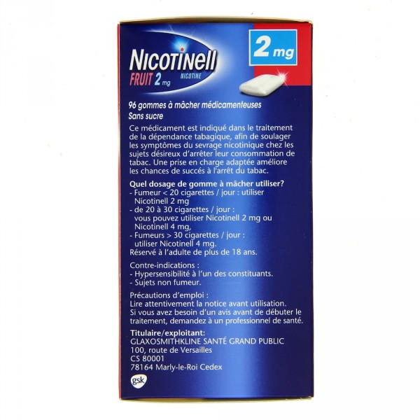 Le choix du dosage est fonction de la dépendance initiale à la nicotine. Les gommes à 4 mg sont adaptées aux fumeurs fortement ou très fortement dépendants ; elles peuvent être également utilisées par les fumeurs peu dépendants qui préfèrent limiter le nombre de gommes mâchées quotidiennement.