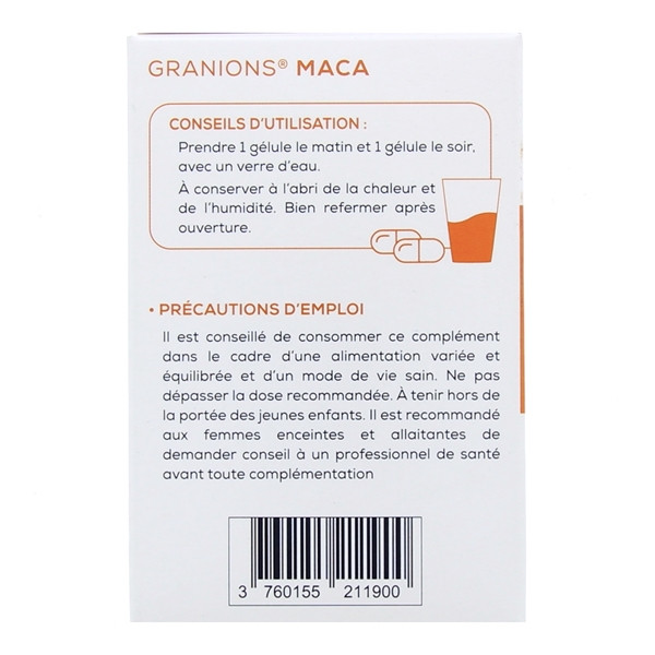 Granions Maca 375 mg x30 gélules végétales est un complément alimentaire à base de plantes naturelles capables de booster la libido. Il est spécialement formulé pour les hommes et les femmes souhaitant stimuler leur désir sexuel. La combinaison de ses différents actifs rend le Granions Maca idéal pour améliorer les rapports de couple. Son utilisation est conseillée en cas d’anxiété, de fatigue, de manque de vitalité ou de gêne envers le partenaire.