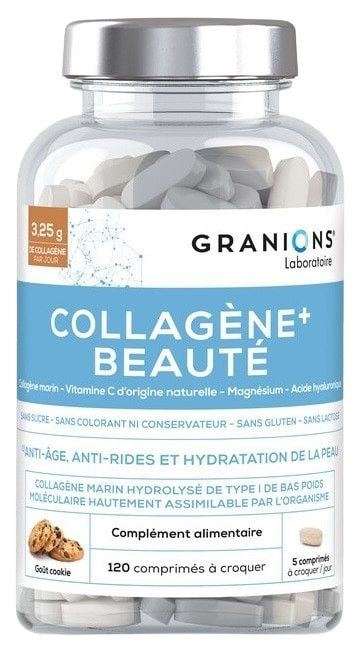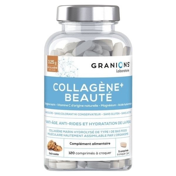 Collagène+ Beauté Cookie est disponible en pilulier de 120 comprimés à croquer goût cookie. Il est fabriqué en France par le laboratoire des Granions. Cette marque garantit une qualité irréprochable de ses produits conformément à son engagement de qualité.