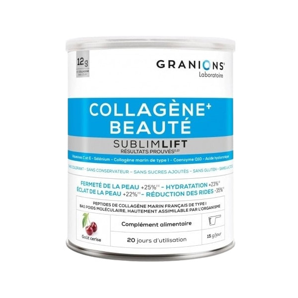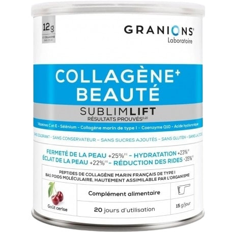 Collagène+ Beauté SublimLift du laboratoire Granions est un complément alimentaire à base de 12 g de collagène marin français de type I. Il offre plusieurs actions : anti-âge, hydratation, éclat de la peau, fermeté de la peau et réduction des rides.